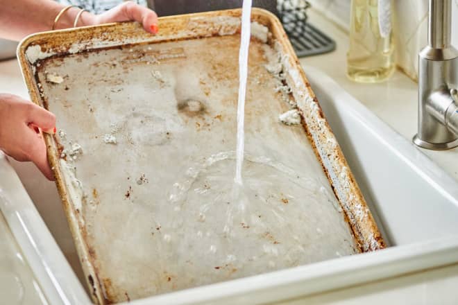 Turns out, it works best with nonstick baking sheets. It also requires zero elbow grease.